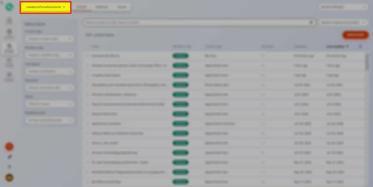 Falls du Zugriff auf mehrere Webprojekte hast, musst du zuerst das Projekt auswählen, an dem du arbeiten möchtest. Um dies zu tun, klicken auf das Menü in der ersten Zeile (oben rechts neben dem Kontent.ai-Logo) und wähle hier das entsprechende Projekt aus.