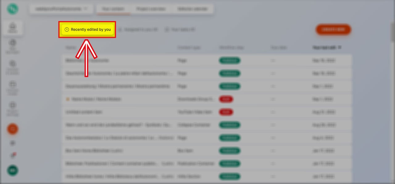 - „Recently edited by you“ - die Liste der von Ihnen abgeänderten Inhalte;
