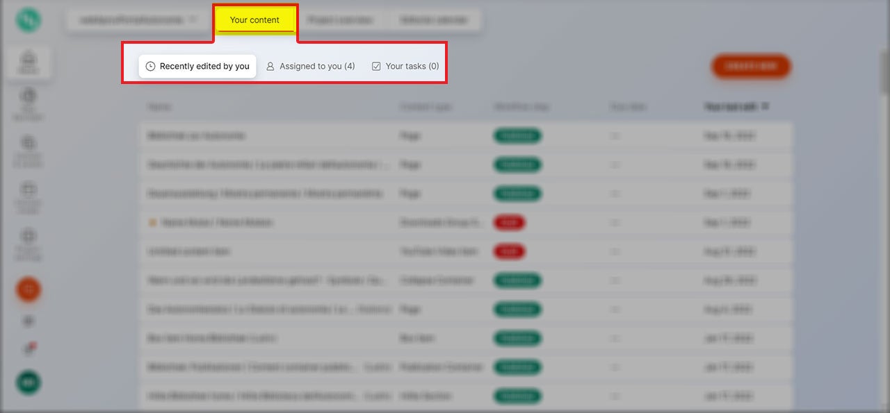 - „Your content“ - die Liste der kürzlich aktualisierten Inhalte;