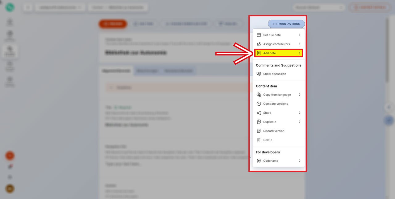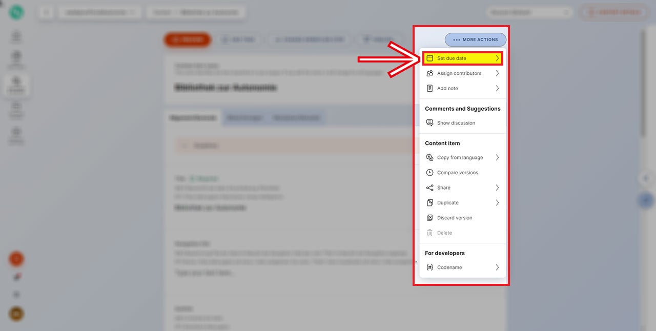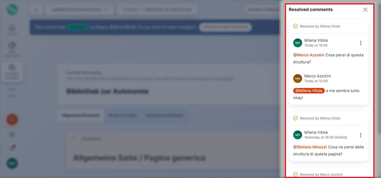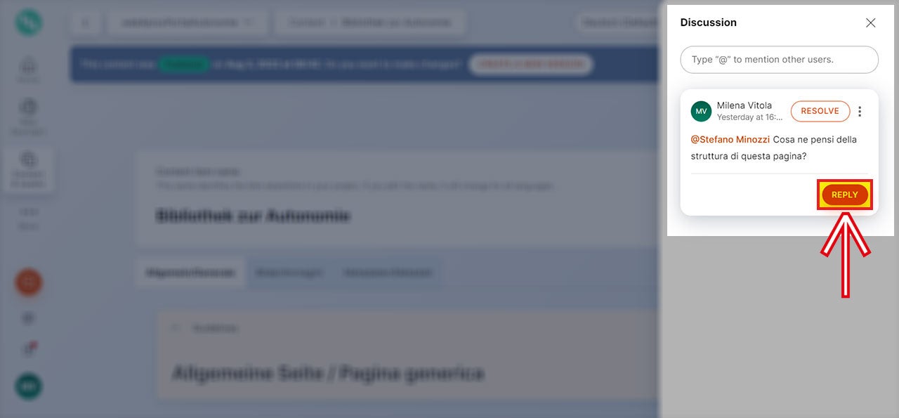 Mit „Show discussion“ können wir eine Diskussion zwischen Kollegen im Arbeitsteam über die Behandlung eines bestimmten Content Items starten.