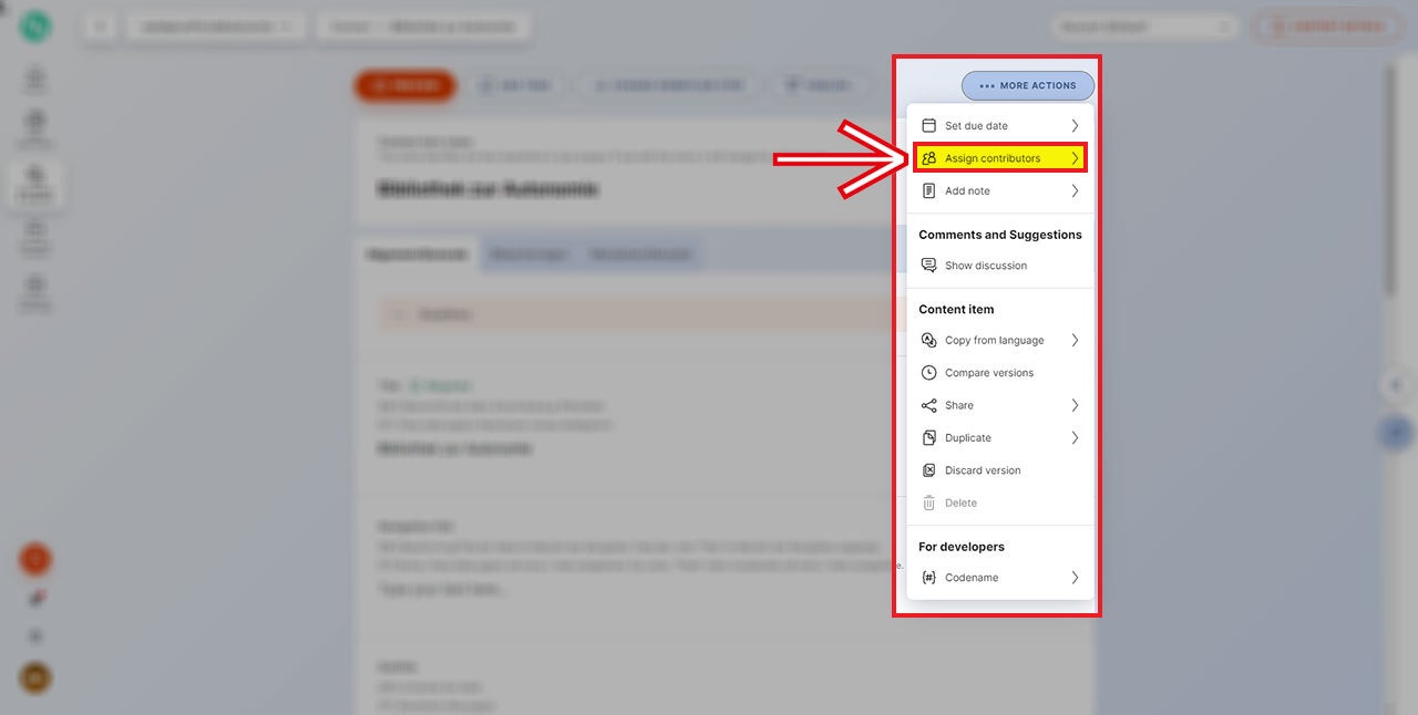 Mit dieser Funktion können wir ein Content Item einer anderen Person in unserem Team zuweisen.