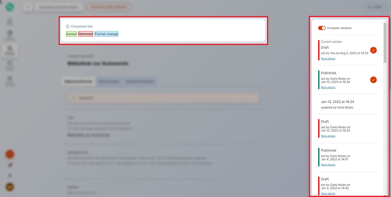„Compare versions“