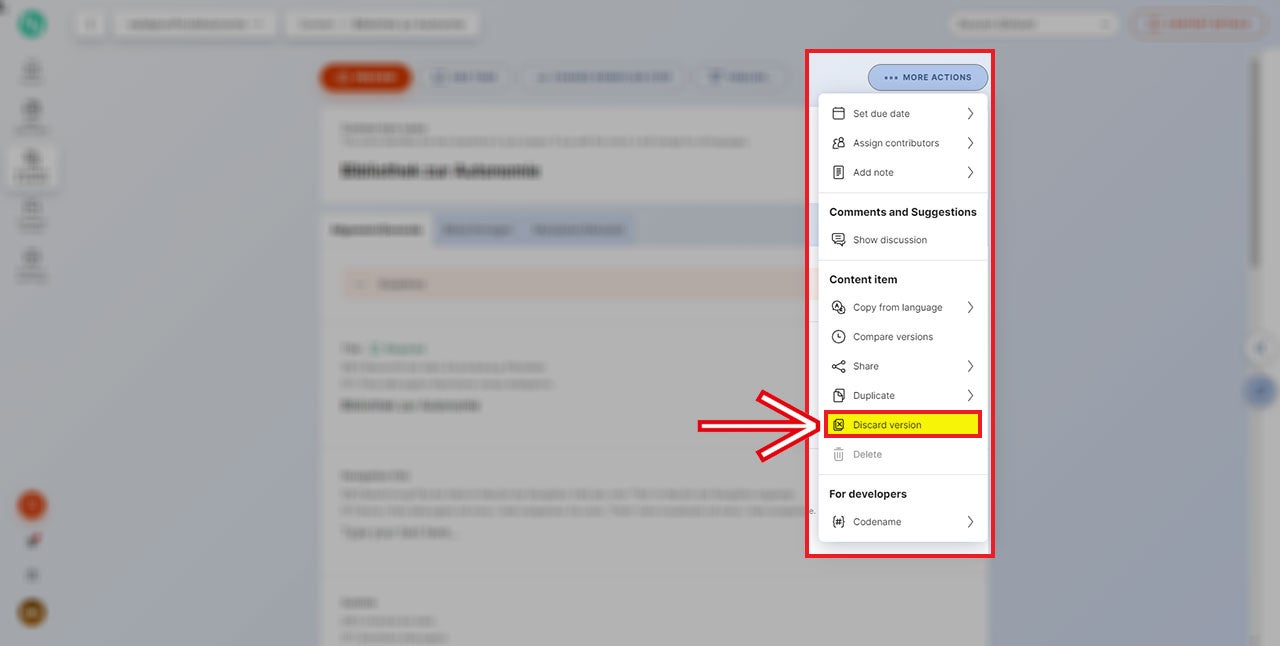 Diese Funktion erlaubt es dir, die ausgeführten Änderungen wieder rückgängig zu machen. Das bedeutet, dass alle Änderungen, die nach dem Klick auf „Create new version“ durchgeführt worden sind, nicht durchgeführt werden und jene Version auf der Website online bleibt, die bereits veröffentlicht ist.