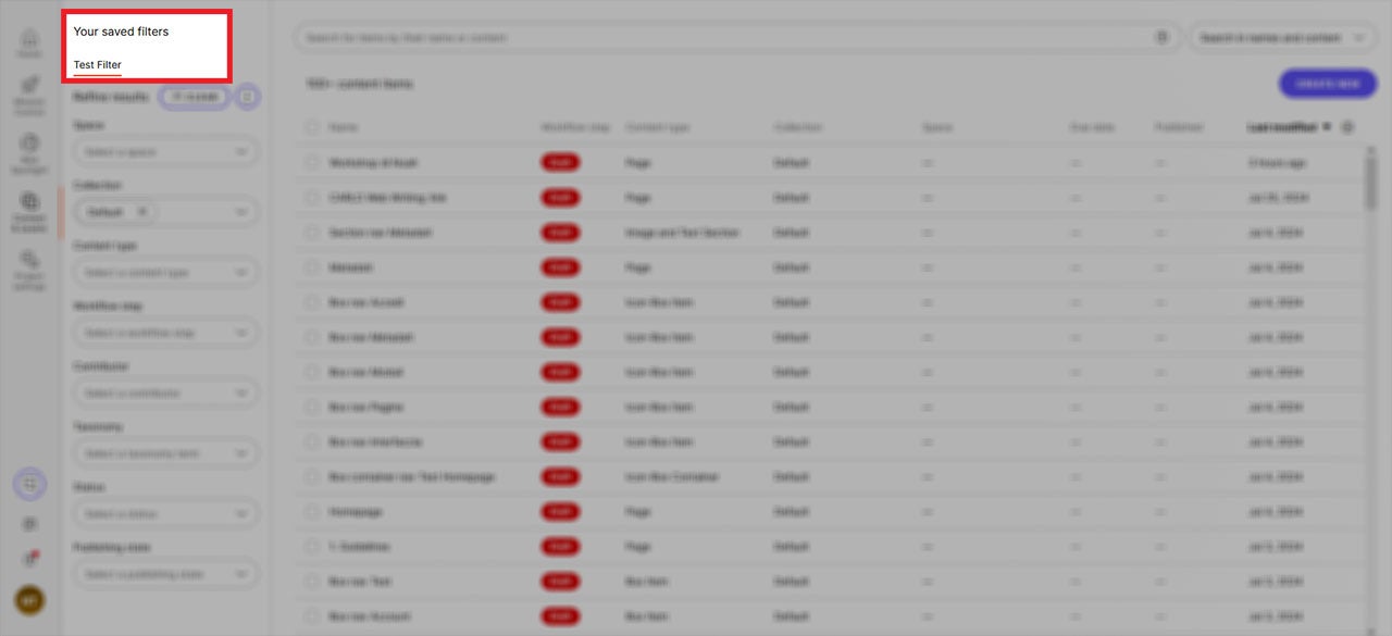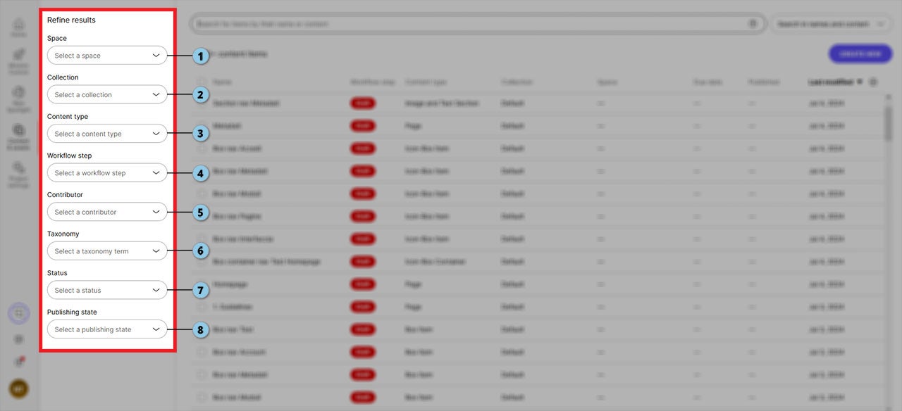 Den Bereich „Content“ filtern