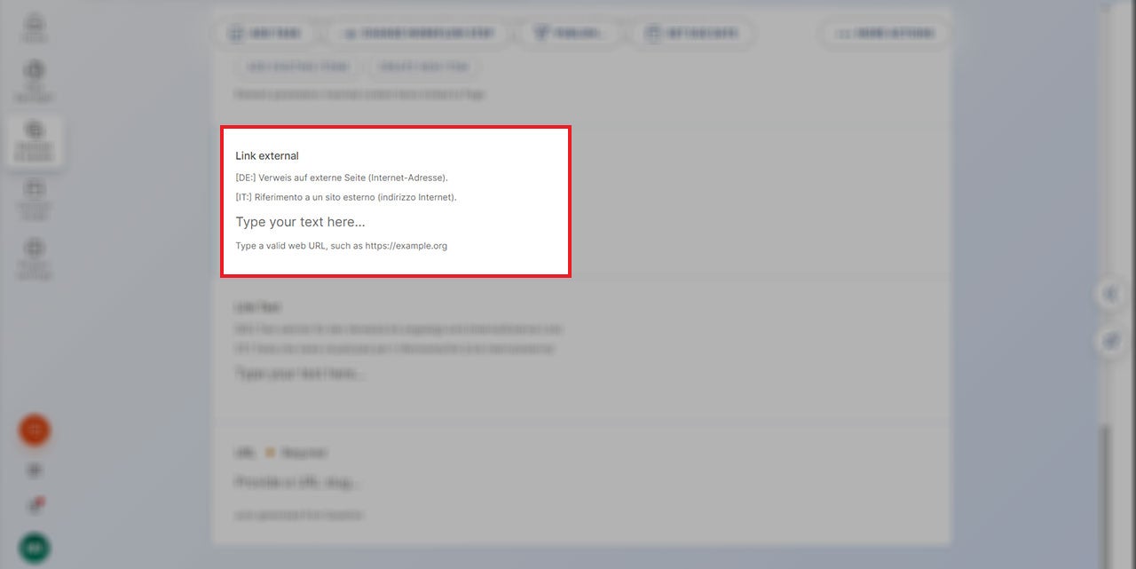Hier kannst du einen Link einfügen, der auf eine externe Seite führt. Du musst die vollständige URL eingeben, z. B. https://example.org.