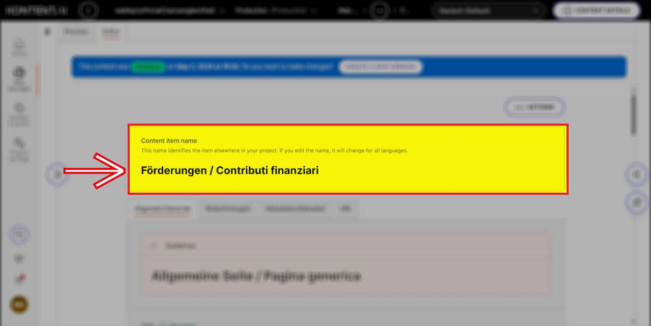Im Content item name sollten alle Sprachversionen eingegeben werden.