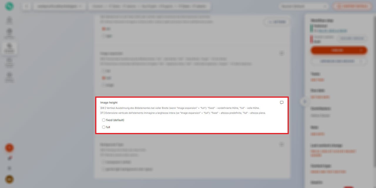 Die darauffolgende Einstellung betrifft die Festlegung der Bildhöhe. Es kann die vordefinierte Höhe („fixed“) eingestellt oder die originale Gesamthöhe des Bildes beibehalten werden („full“).