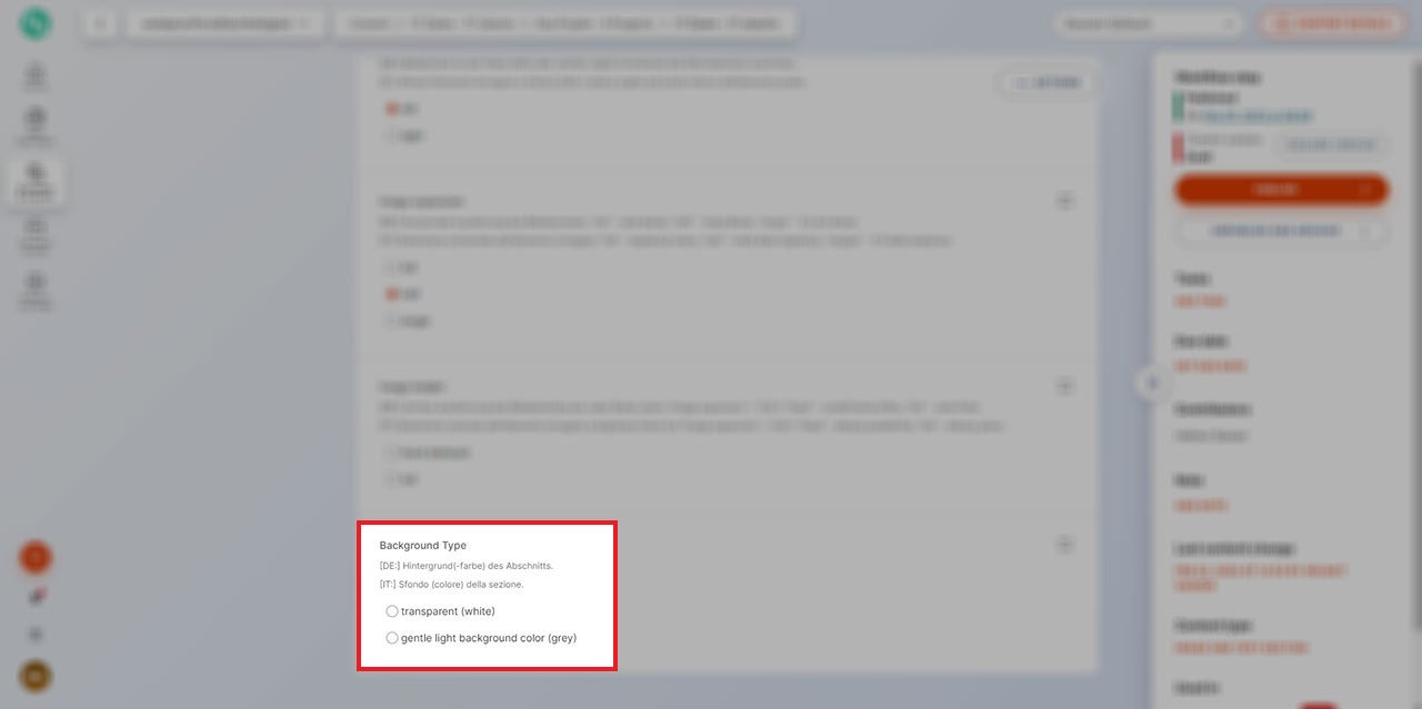 Im letzten Abschnitt kann die Hintergrundfarbe des gesamten Moduls definiert werden. Es gibt eine Variante mit transparentem Hintergrund („transparent“) und eine mit einem hellgrauen Hintergrund („grey“).