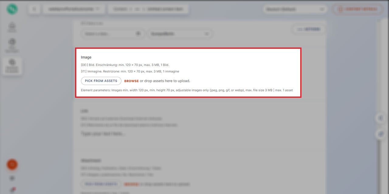 Der Name des Items wird nur in Kontent.ai verwendet und ist nicht der Titel des. Dieser Titel dient dazu, das Modul innerhalb der internen Suche im CMS im Abschnitt „Content & Assets“ schnell zu finden. Als Standard soll ein Name für alle Sprachvarianten des Projekts vergeben werden, z. B. Name Modul / Nome Modulo und die beiden Sprachversionen mit einem Querstrich („Slash“) getrennt werden.