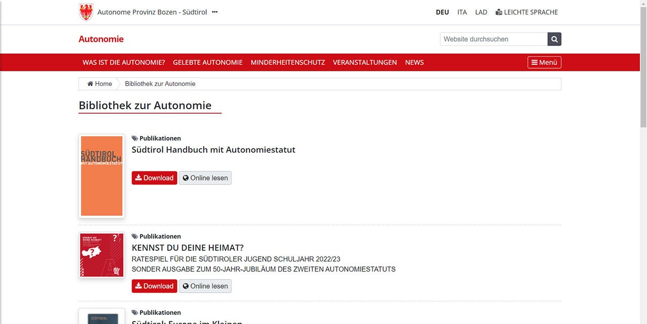 Diese Elemente entsprechen den einzelnen Publikationen. Jeder einzelne Abschnitt muss immer nach diesen Schritten erstellt werden.