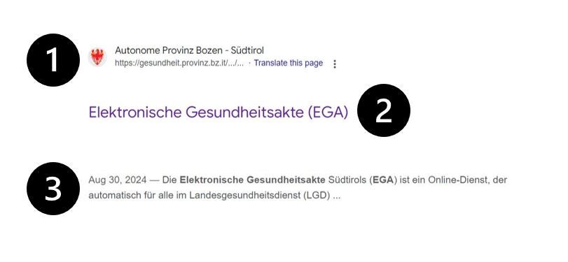 - dem Titel der Seite, der dem Metatitel entspricht;