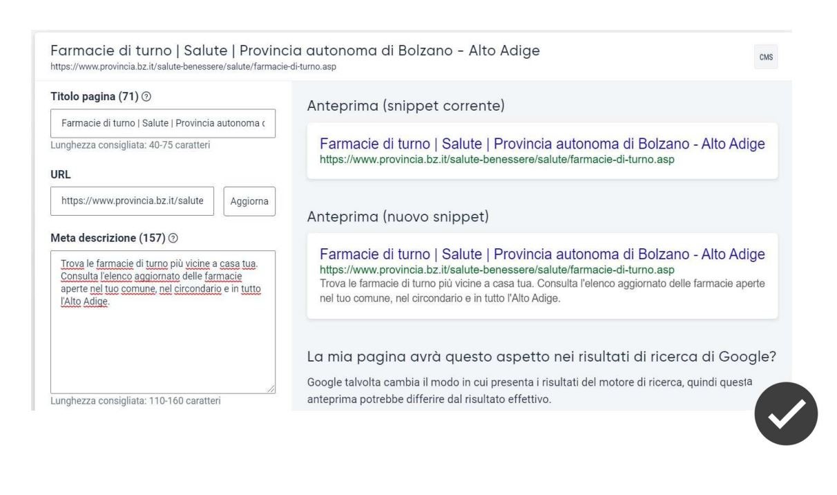Um das Snippet zu optimieren, können Sie auch die Vorschläge von Siteimprove nutzen.
