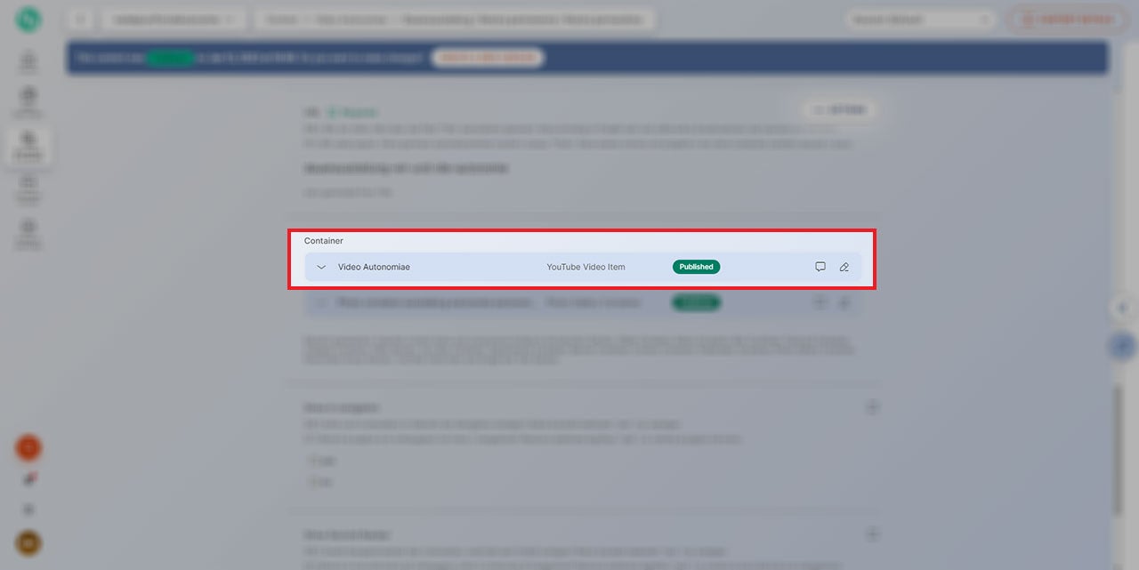 Das Modul „Youtube Video Item“ kann direkt im Abschnitt „Container“ über den Button „Create new item“ auf einer Detailseite erstellt werden.