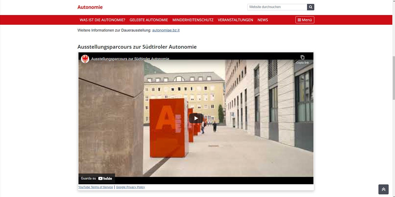 Dank der Einbindung des YouTube Video Items können wir bereits auf den YouTube-Kanälen der Provinz veröffentlichte Videos integrieren und verlinken.